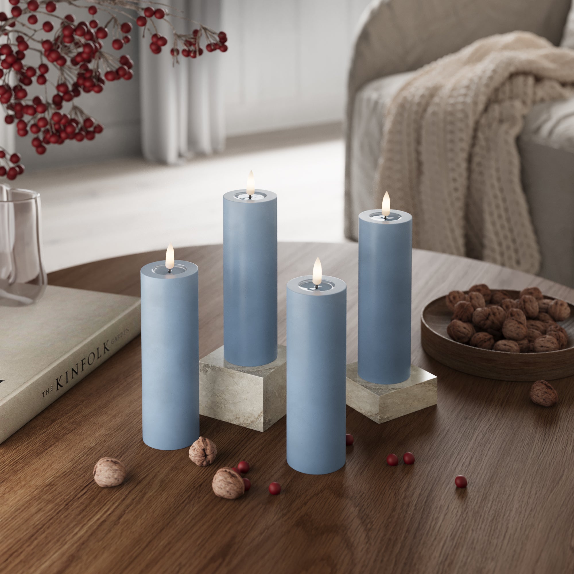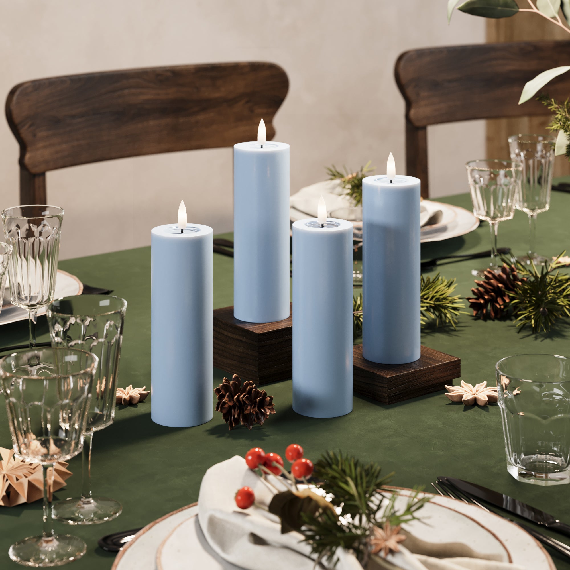 LED Bougie pilier Ø 5 x 15 cm Bleu glace - 4 PCS