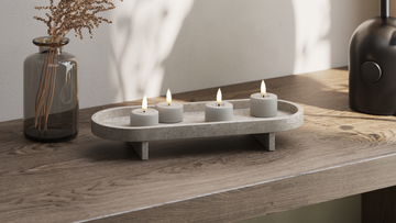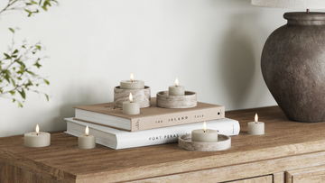 Brug LED stearinlys som en rolig detalje i indretningen – både alene og i en lille gruppe.