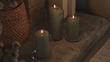 Esta articulação elegante Vela pilar em Verde sálvia Oferece um efeito de 'chama real' da vida real que é tão realista quanto uma vela real. Com uma altura de 10 cm e um diâmetro de 10 cm é uma junta Vela pilar Cuidadosamente feito de velas e resina, equipado com uma chama 3D realista e um revestimento exclusivo de resina no topo. Essa combinação específica não apenas cria um sentimento autêntico, mas também dá ao distinto 'olhar molhado' que imitando as velas derretidas perfeitamente.
